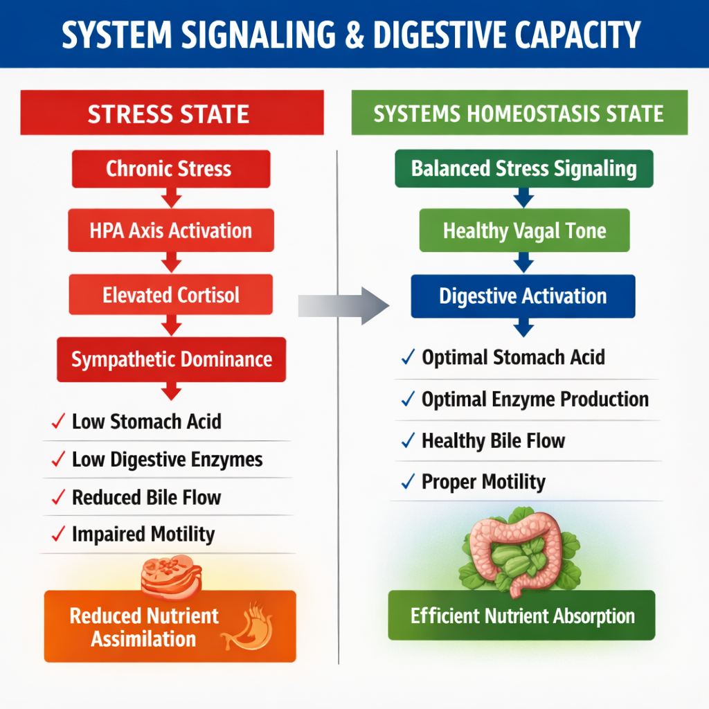 From the perspective of Systems Homeostasis, digestive dysfunction is often downstream of broader regulatory imbalance.